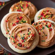Melt-in-your-mouth sugar cookies! They're packed with maple cinnamon flavor, covered with a sweet buttery frosting and they're just simply perfect for fall. Everyone will start requesting these!