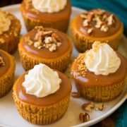 Mini Pumpkin Cheesecakes {with Salted Caramel Sauce}