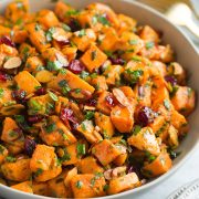 A delicious sweet potato salad with sweet, citrusy, spiced and herby flavors. A great summer or fall recipe. Pair it with grilled or roasted chicken to complete the meal.