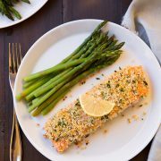 Likely to become one of your new favorite ways to prepare salmon and it's so easy. Salmon fillets are coated with a simple honey mustard glaze and dredged in crispy panko then oven baked.