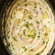 Super easy mashed potatoes! Potatoes are diced into chunks and added to a slow cooker along with garlic and water then cooked. Then you'll mash, and mix in milk and sour cream. Perfect for a lazy weeknight side dish yet delicious enough for a holiday meal.